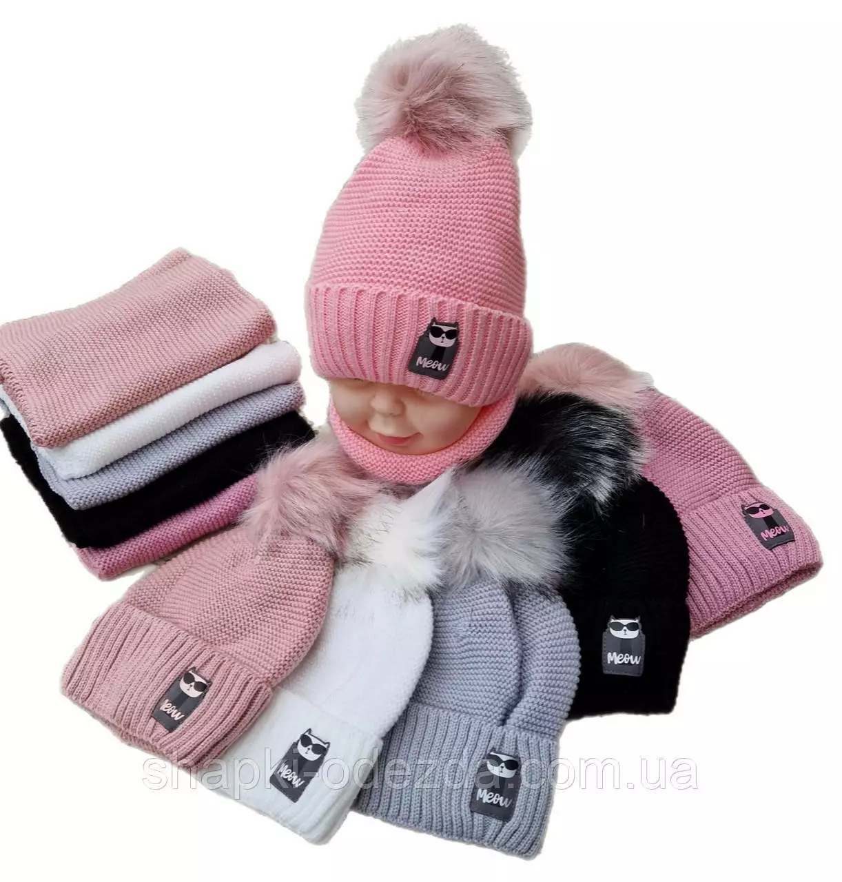 91039. Комплект зимовий для дівчинки шапка й баф "MEOW" , різні кольори (2-6 років)