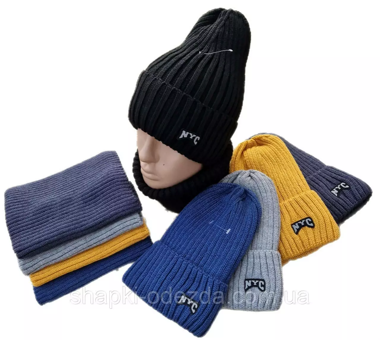 91044 Комплект для хлопчика шапка на флісі "NYC" і снуд, от 3-15 років різні кольори