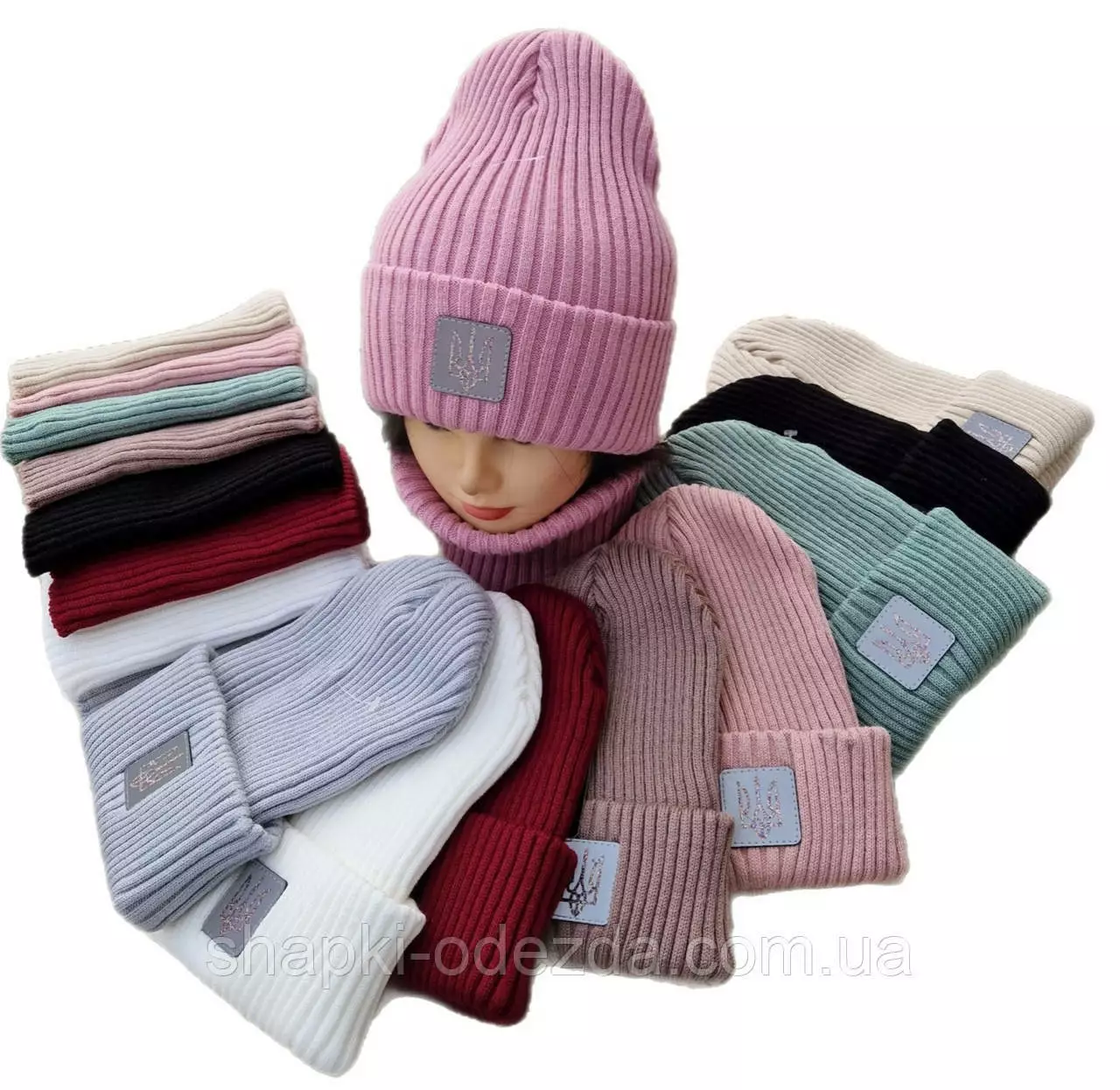 91048 Комплект подвійний дівчинки шапка "Тризуб" і снуд, від 3-15 років різні кольори