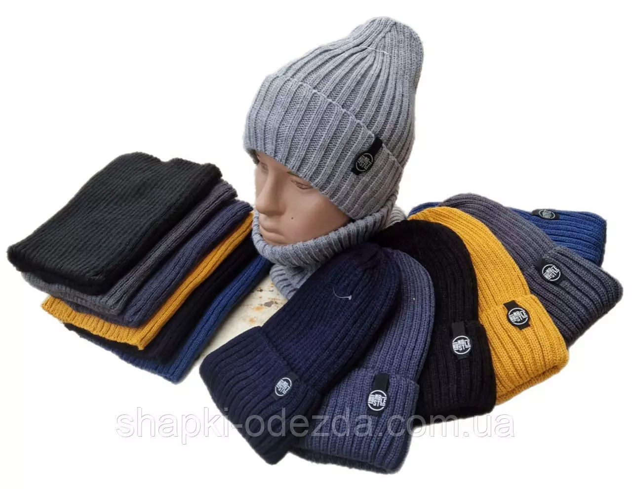 92012 Комплект для хлопчика-підлітка Фліс шапка будиночок "HUSTLE" і снуд, 3-15 років, різні кольори