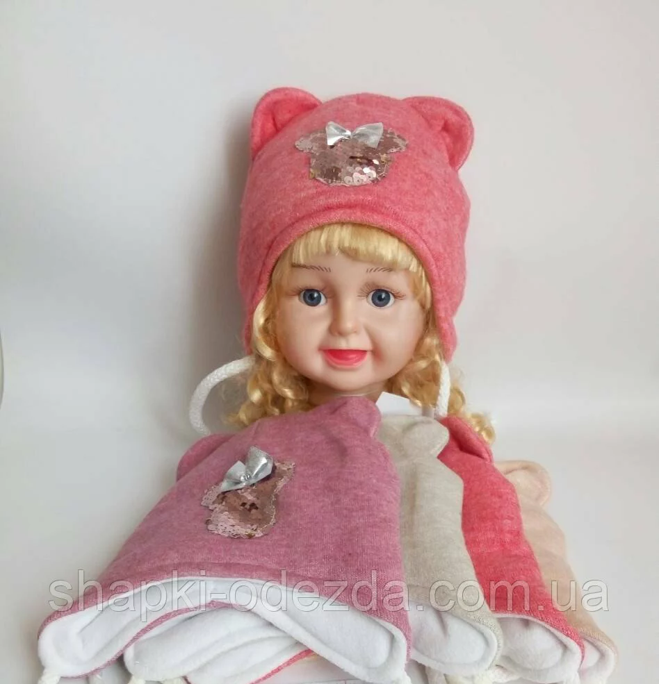 Детская шапка на флисе+холлофайбер для девочки р 38-40