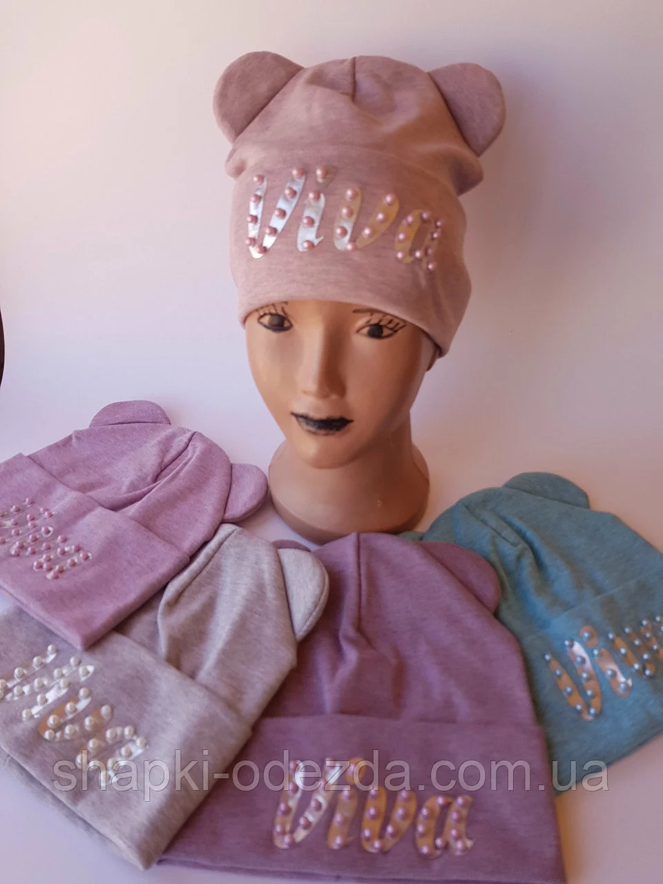 Детская трикотажная шапка для девочки двойная с отворотом р 50-52