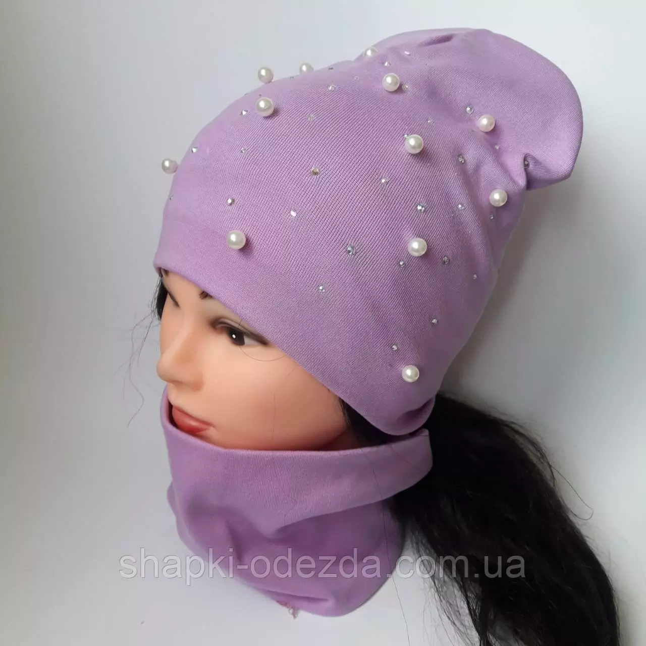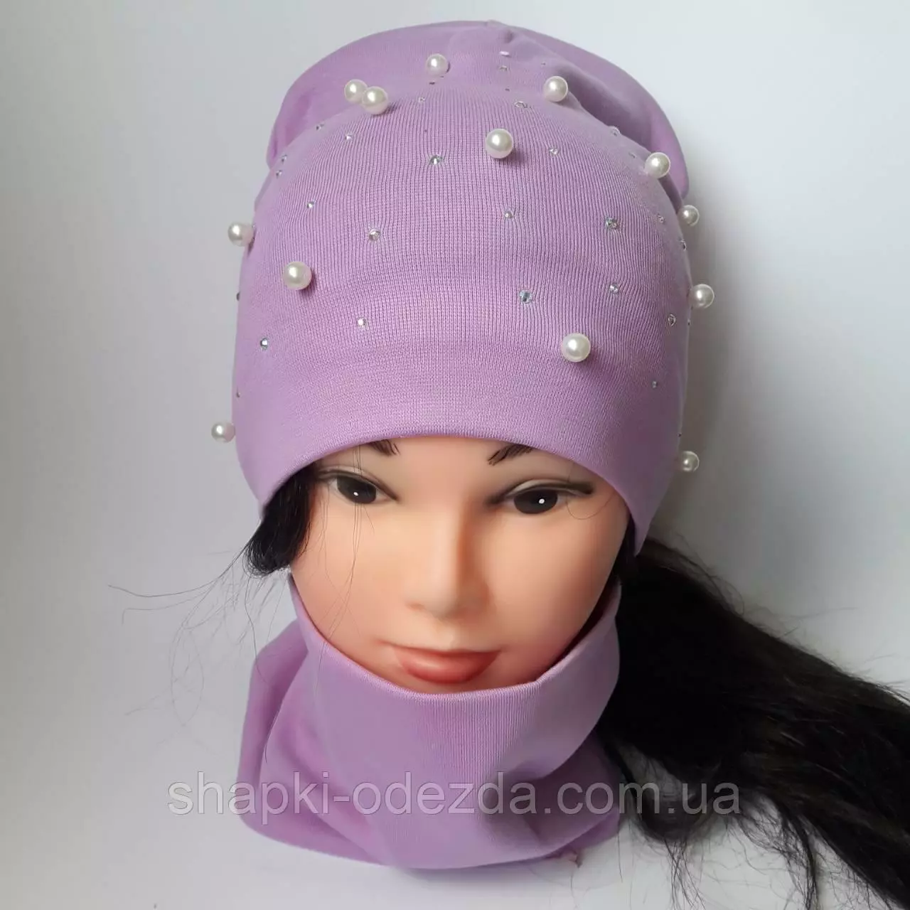 Детская трикотажная шапка с хамутом двойная р 50-52
