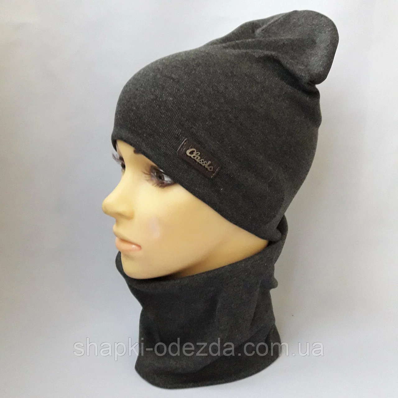 Детская трикотажная шапка с хомутом для мальчика двойной р 52-54