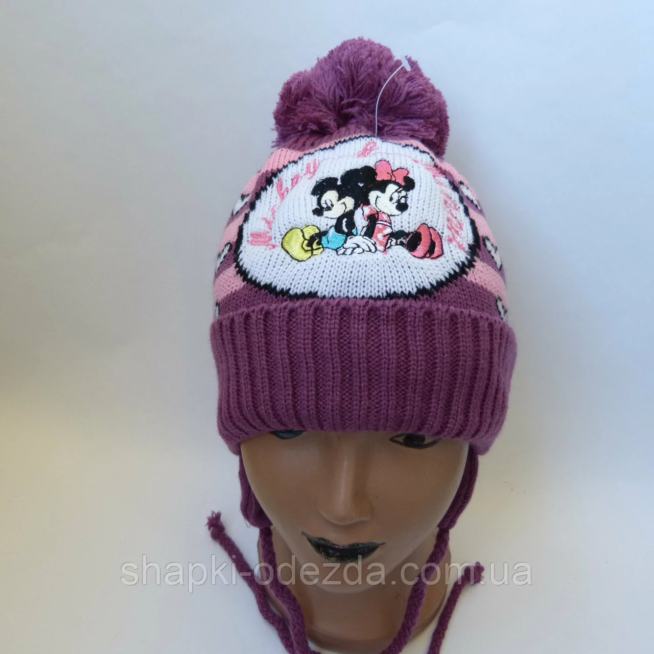 Детская вязаная шапка для девочки двойная на завязке 2-3 лет