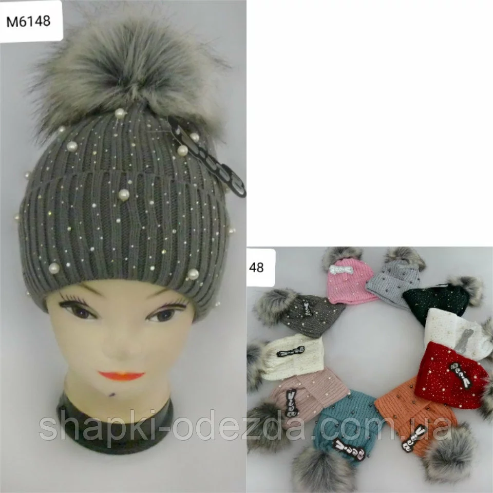 Детская вязаная шапка для девочки подросток зима на флисе