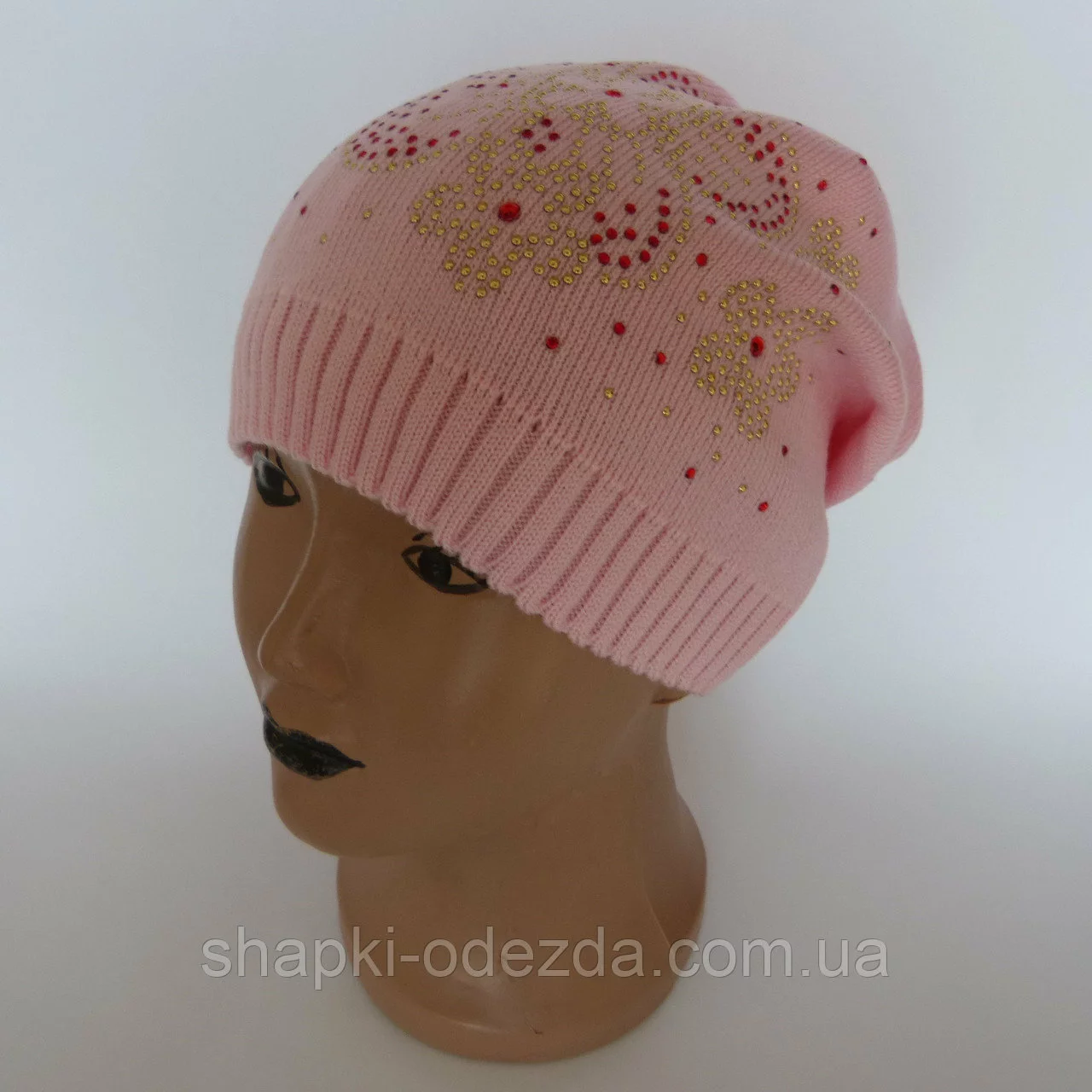 Детская вязаная шапка для девочки с украшением с бисеров от 4-6 лет