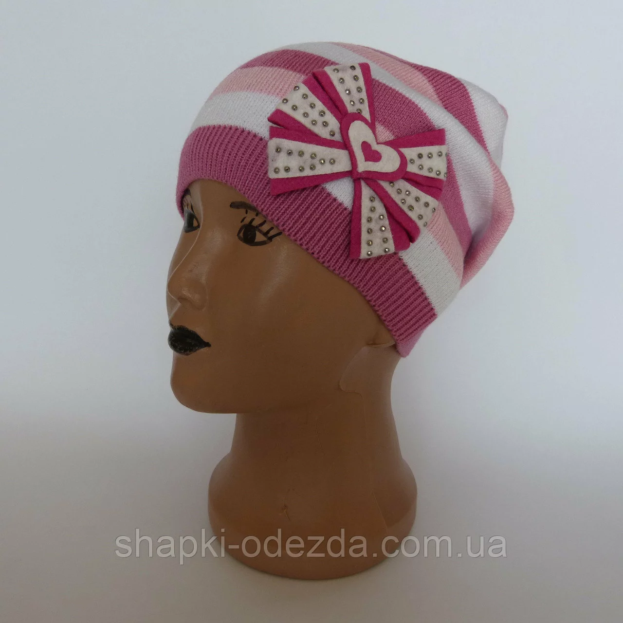 Детская вязаная шапка для девочки в полоску от 4-6 лет