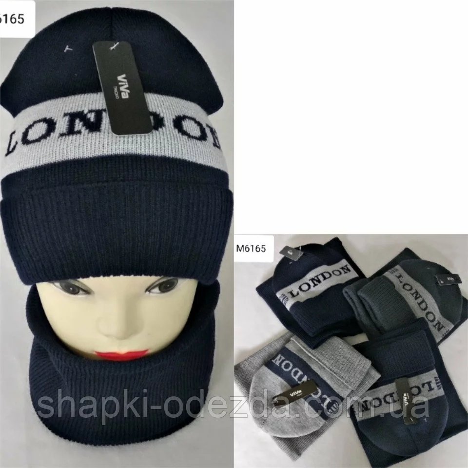 Детская зимняя вязаная шапка для мальчика на флисе + баф р 52-54
