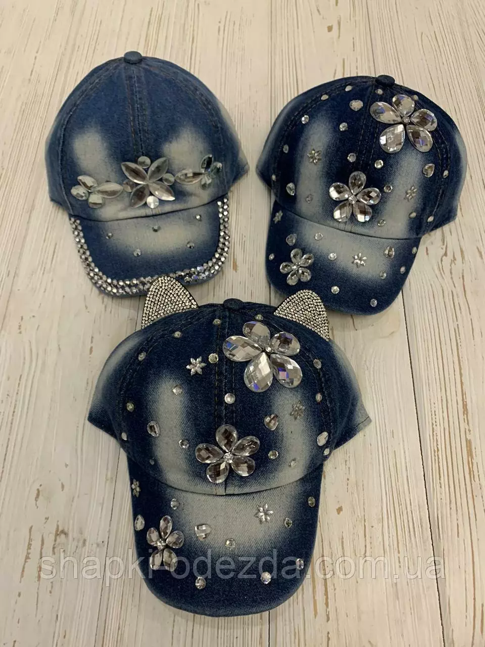 Кепка детская Оптом для девочки украшена камнями "Стразы" р 48-50