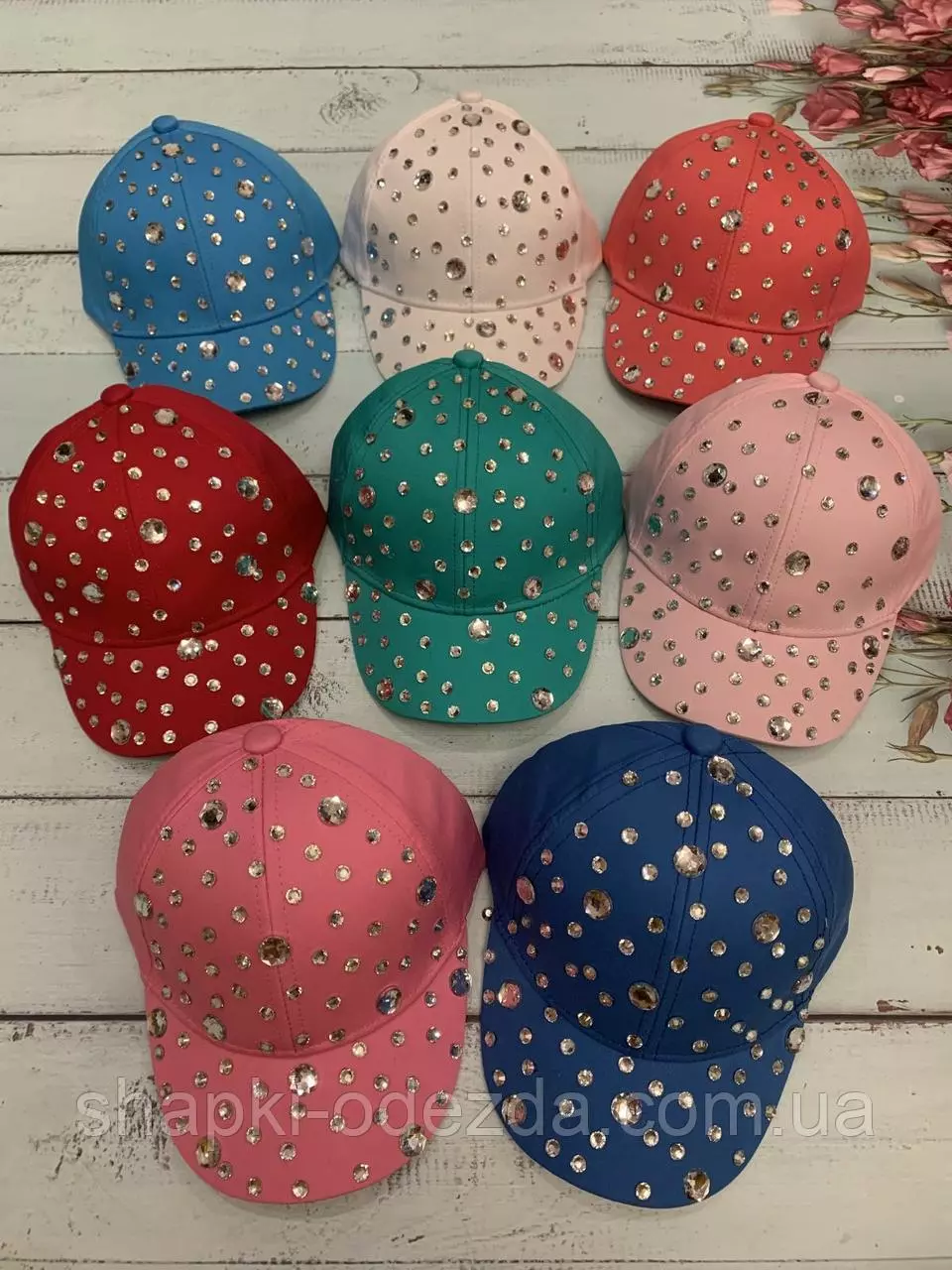 Детская бейсболка - кепка с твердым козырьком станет отличным вариантом для ношения каждый день.                                                Передняя панель изделия декорирована рисунком  "Страз". Хорошую и удобную посадку на голе обеспечивает регулирующий ремешок,который расположен сзади изделия. Такой головной убор сочетается с любыми вещами и защитит от солнца                               В упаковке 5 шт разных цветов и могут меняться от указанного фото