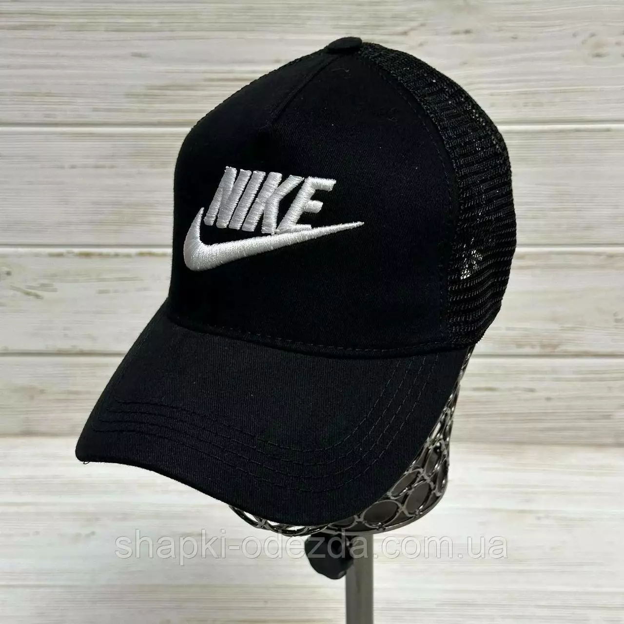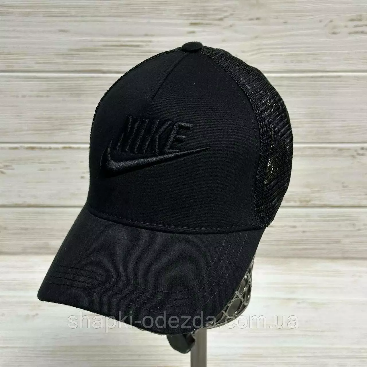 Кепка-тракер черные сетка Оптом "Nike" с регулятором