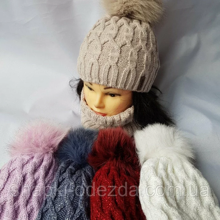 КОМПЛЕКТ ЖІНОЧИЙ-ПІДЛІТКОВИЙ:С НАТУРАЛЬНЫМ ПОПОНОМ ПЕСЦА ШАПКА+ХАМУТ (10-70 РОКІВ), флис, РОЗМІР ВІЛЬНИЙ