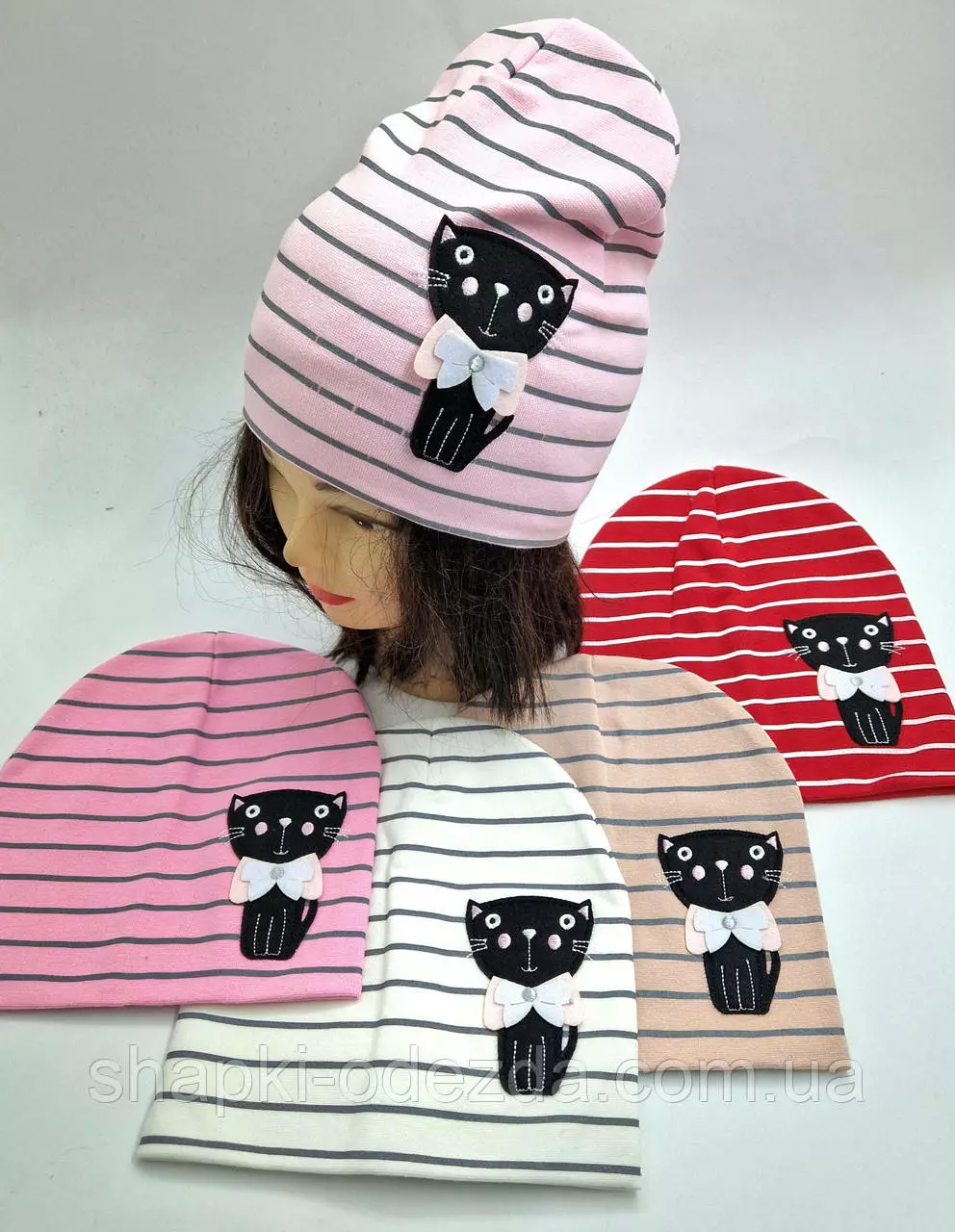 М 92564. Шапка двойная для девочки вышивка-аппликация "КОТИК с бантом" shapki-odezda.com.ua, 2-8 лет