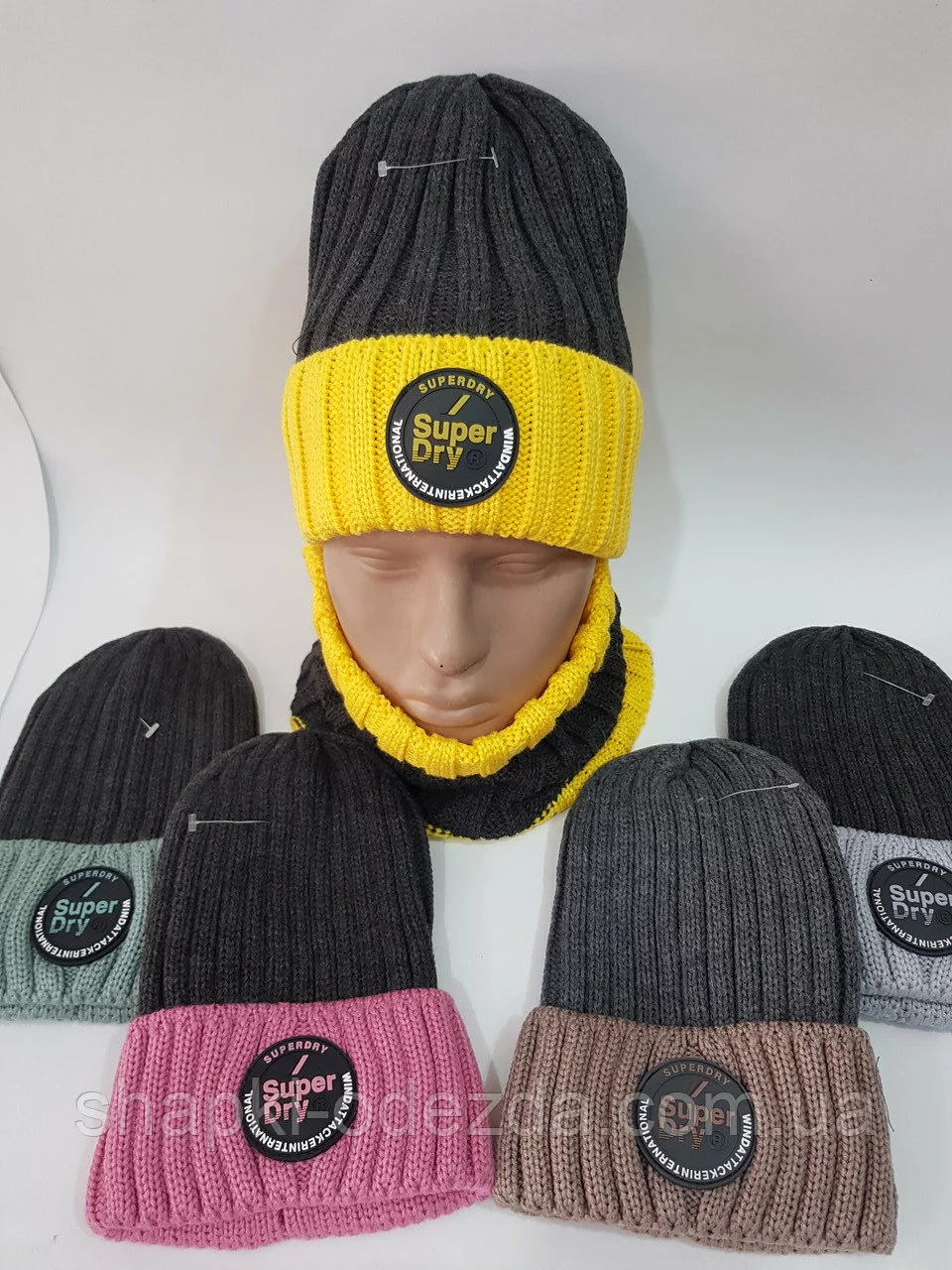 М 93012. Комплект зимний шапка"SUPER DRY" и снуд , разные цвета (3-12 лет)