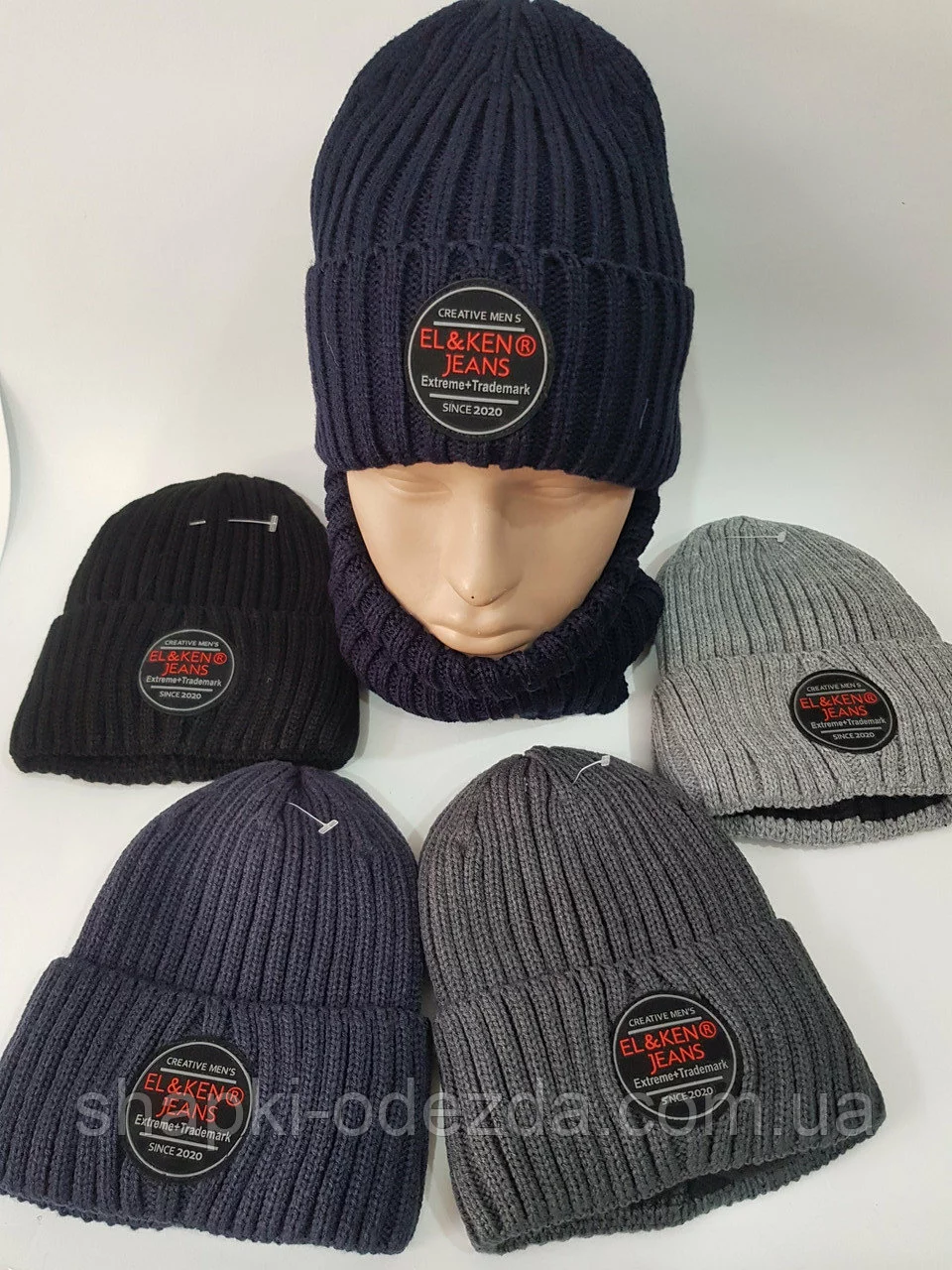 М 93031 Комплект для мальчика шапка на флисе ,"EL&KEN JEANS" и снуд, от 3-10 лет разные цвета