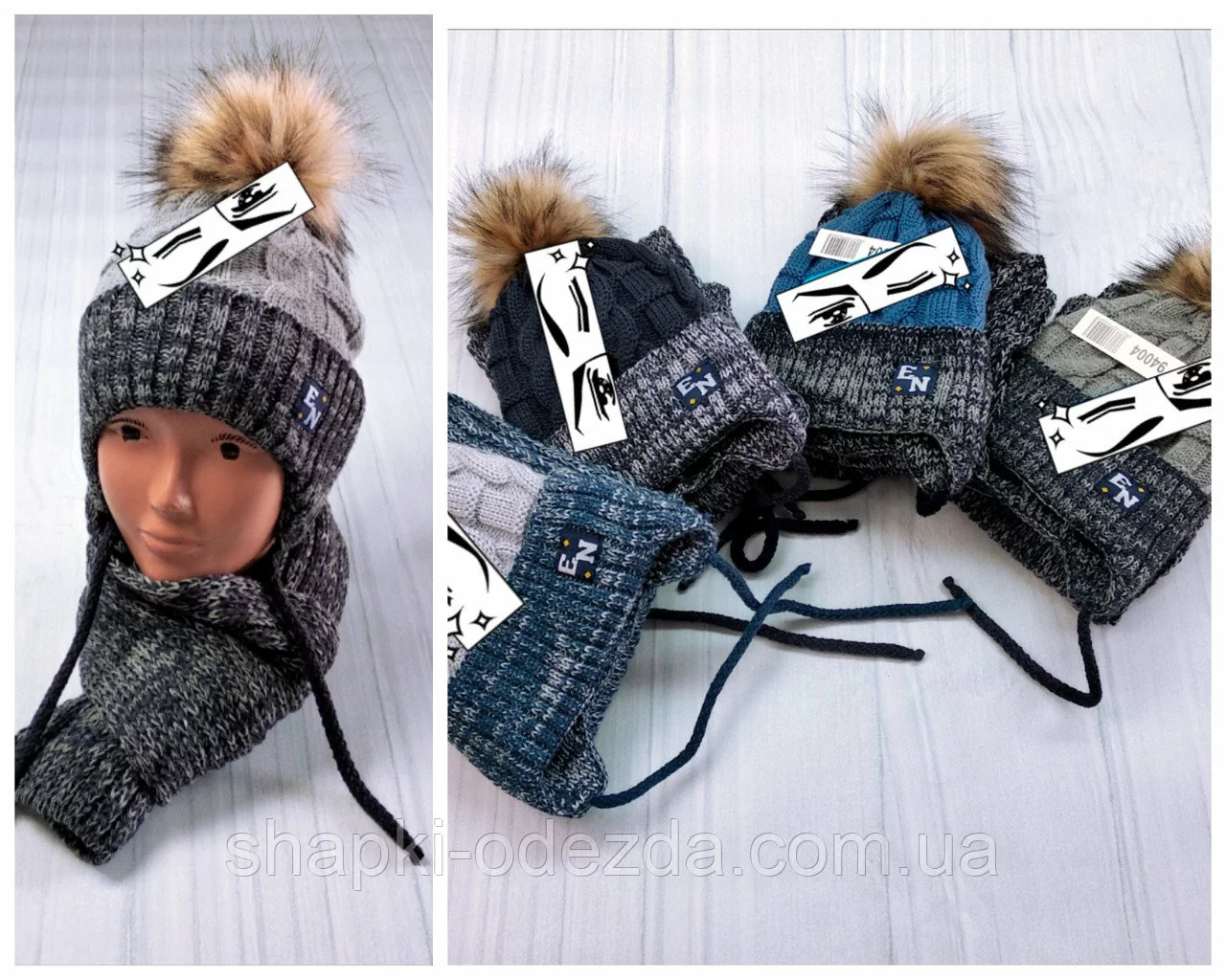 М 94004 Комплект для мальчика шапка с шнурками на флисе и шарф, разные цвета
