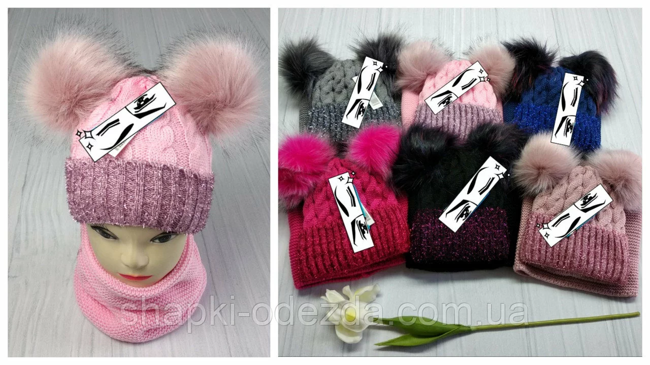 91049. Комплект зимовий для дівчинки Фліс шапка "МІКІ" та баф, різні кольори (2-6 років)