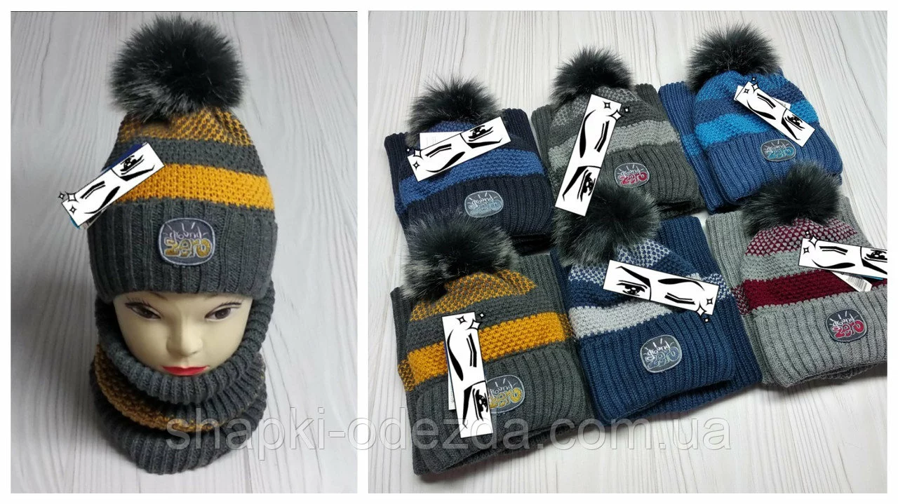 М 94013 Комплект для мальчика шапка с помпоном и баф зимний на флисе , разные цвета