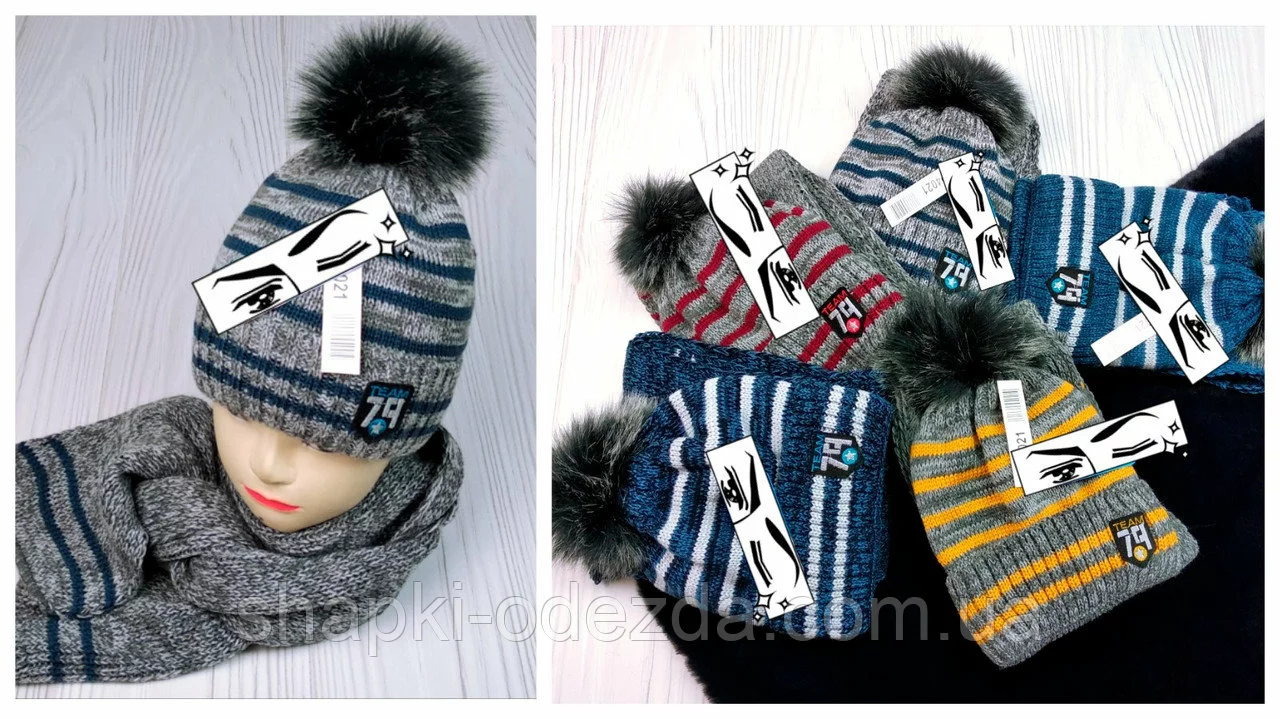 М 94021 Комплект для мальчика шапка на флисе и шарф, разные цвета