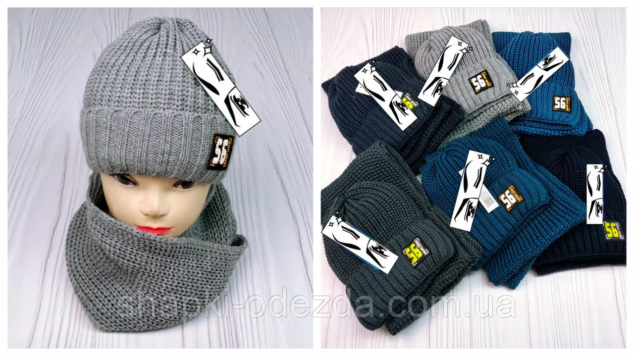 М 94040 Комплект для мальчика шапка "56" на флисе и хомут, разние цвета