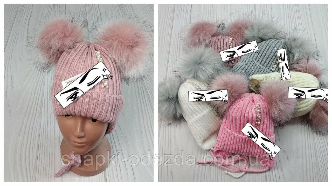 М 94045 Шапка вязаная зимняя для девочки с ушками (малявка) 1-5 лет, разные цвета Флис