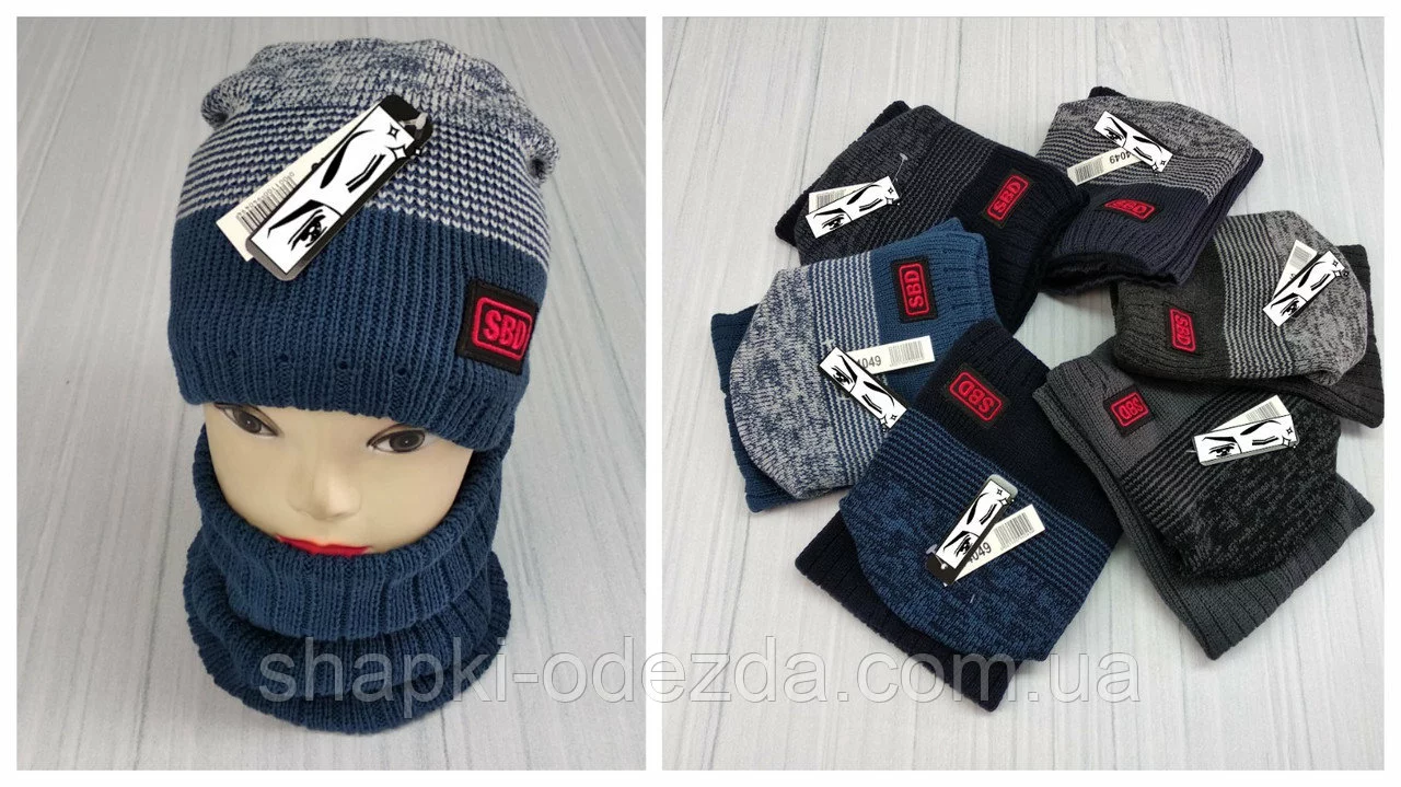 М 94049 Комплект для мальчика, подростка шапка с закрепкой на флисе и снуд, разные цвета