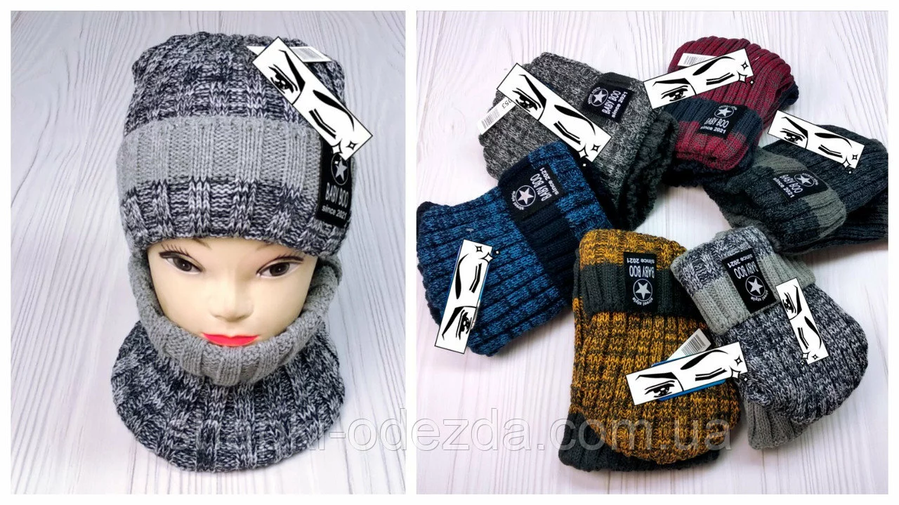 М 94053 Комплект для мальчика, подростка шапка с кнопкой на флисе и снуд, разние цвета