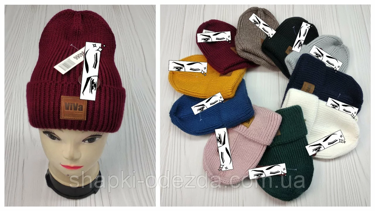 М 94066. Шапка с отворотом женская, подростковая "VIVA", разние цвета, размер универсальный(5-70лет)