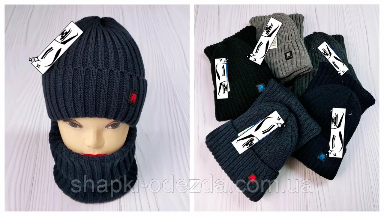 М 94068 Комплект для мальчика шапка на флисе и снуд, разные цвета(3-12 лет)