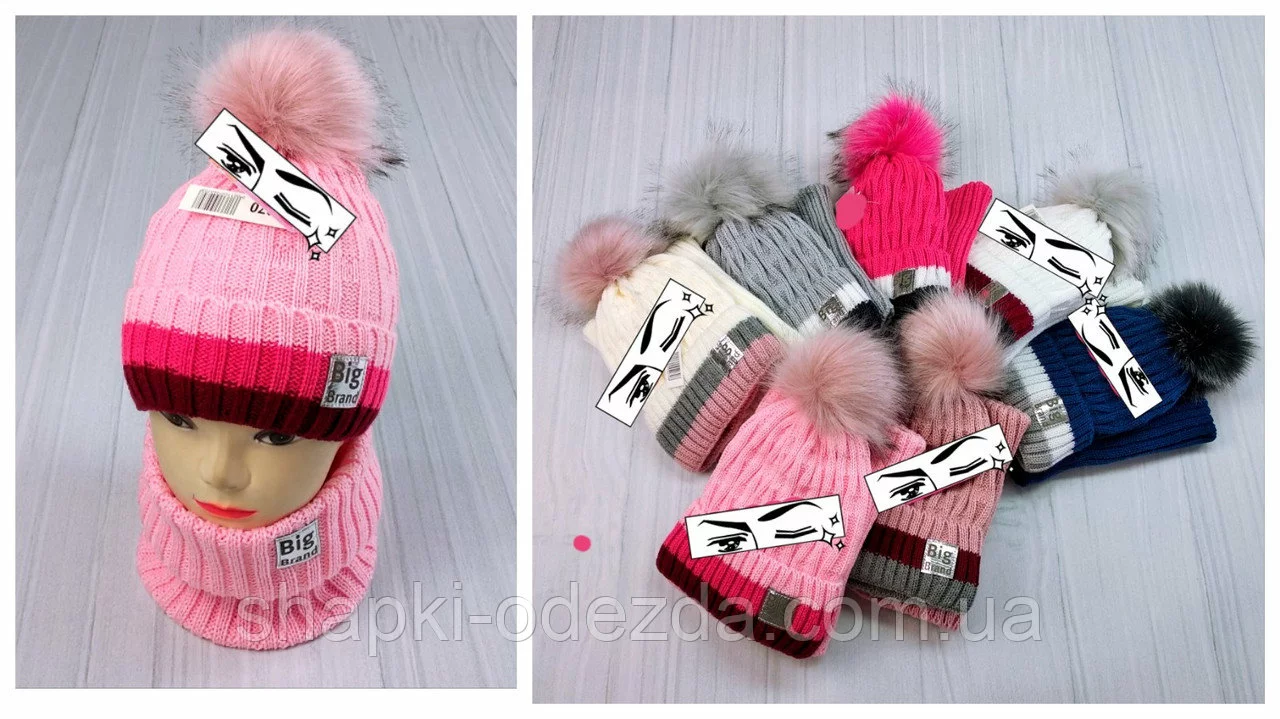 М 94070. Комплект зимний для девочки шапка и снуд , разные цвета (3-12 лет) Флис + снуд