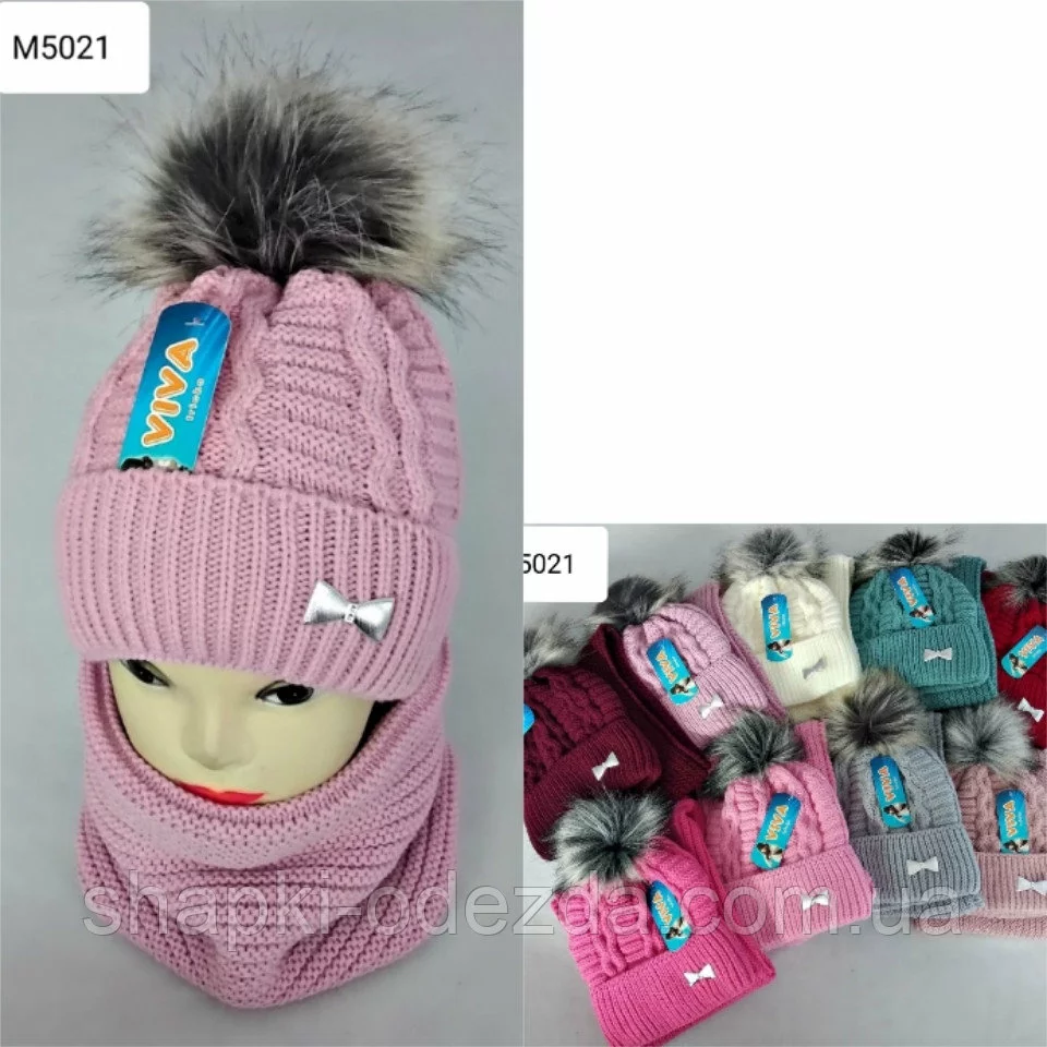 Набор детский для девочки шапка + баф 3-15 лет на флисе кашемир