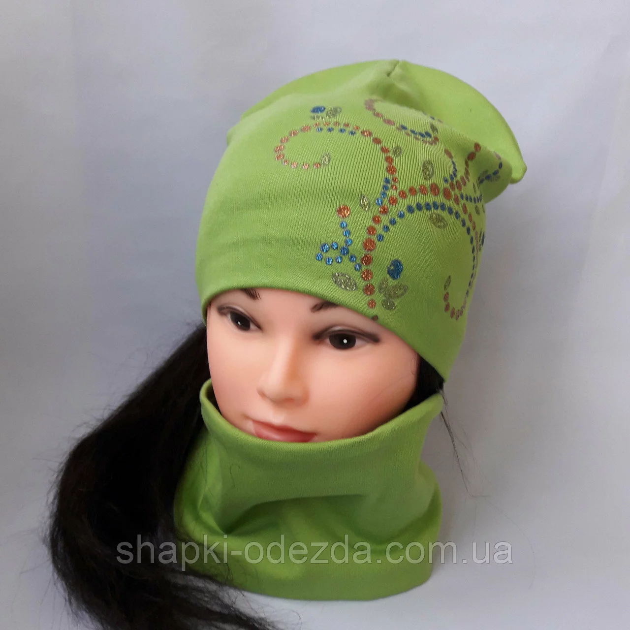 Набор трикотажный для девочки шапка двойная р 52-54