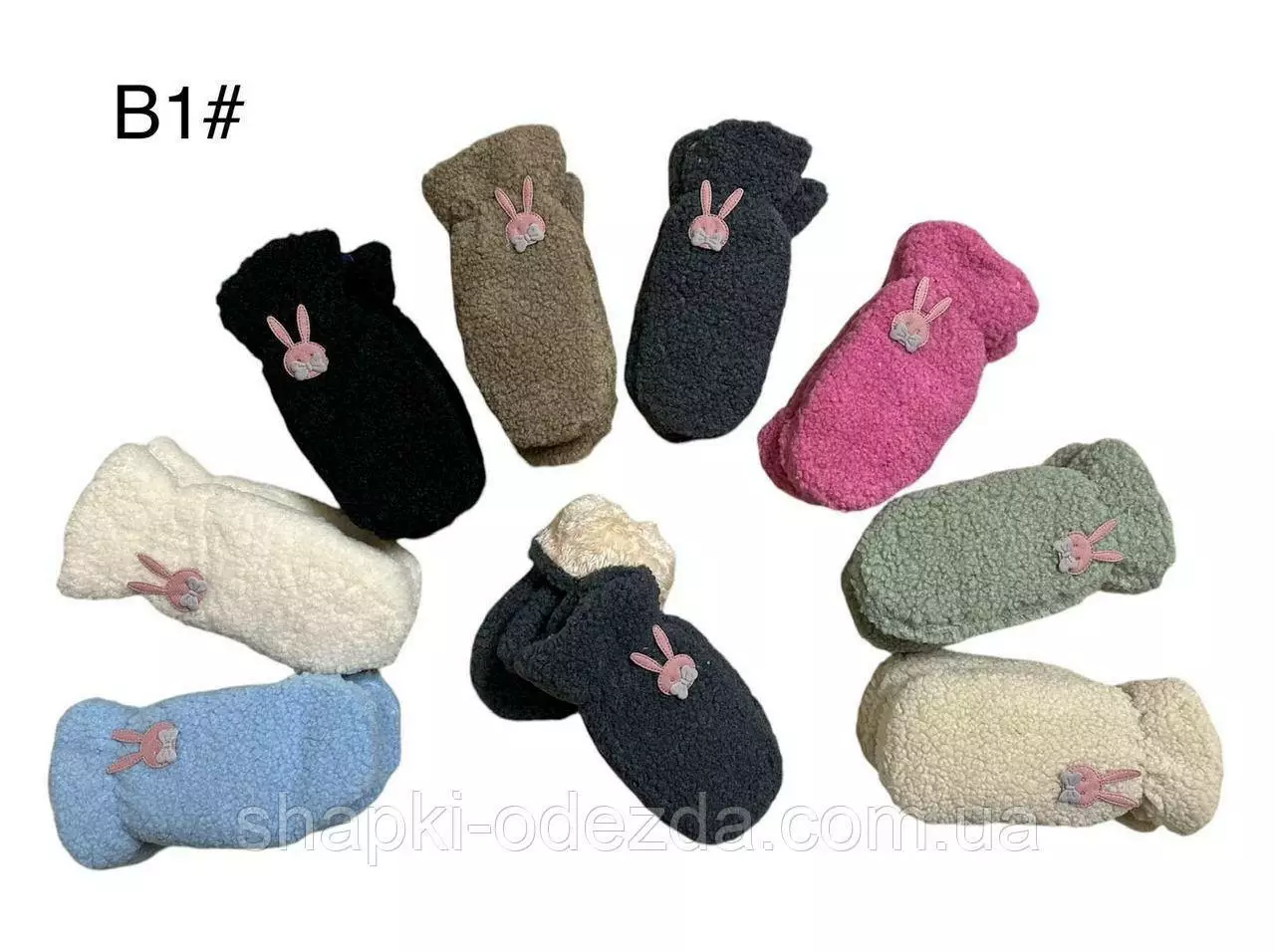 Плюшевые варежки для детей Оптом "Зайчик" внутри мех