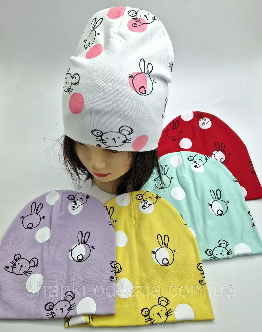Двойная трикотажная шапка для девочки в стильном дизайне можно купить у нас только оптом