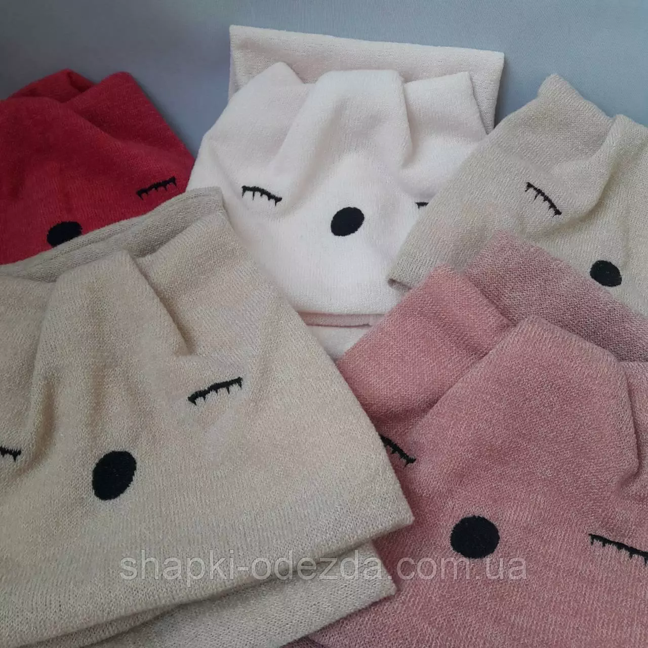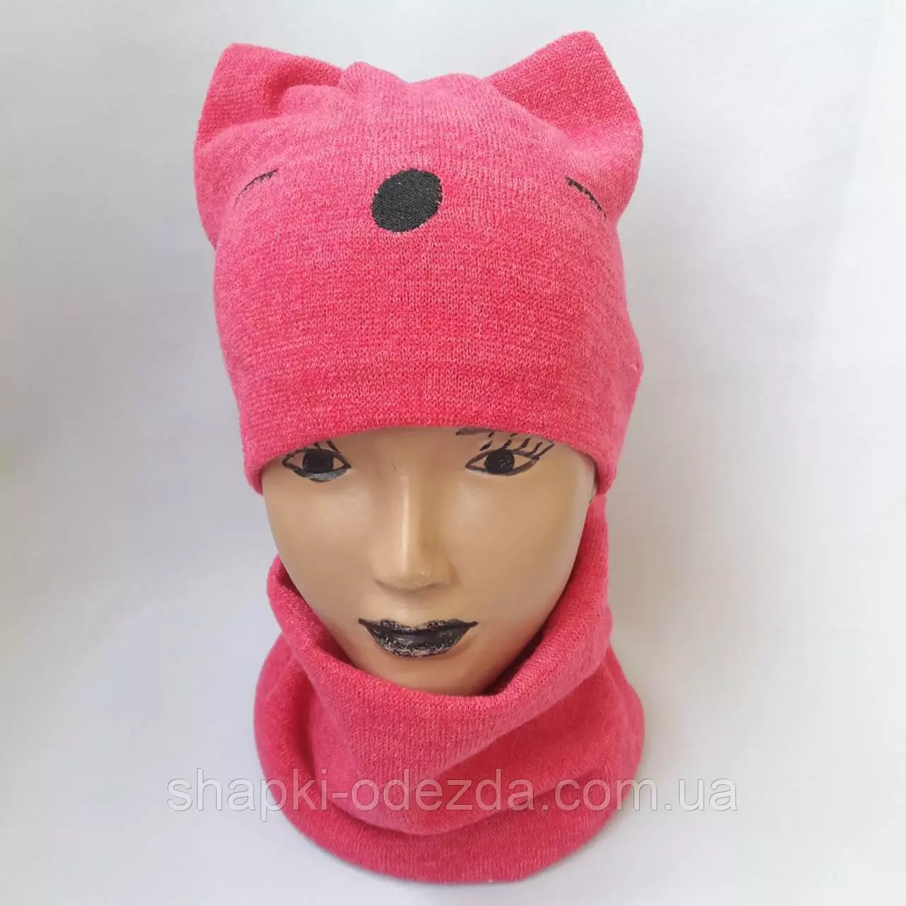 Шапка кошечка на тонком утеплителе + хомут для девочки р 44-46