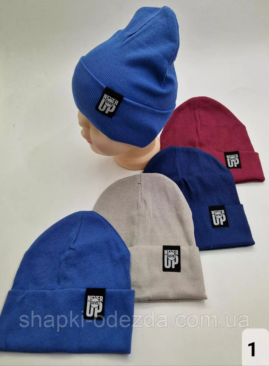 Шапка одинарная с двойным отворотом для мальчика "NEVER GIIVE UP", 1-8 лет