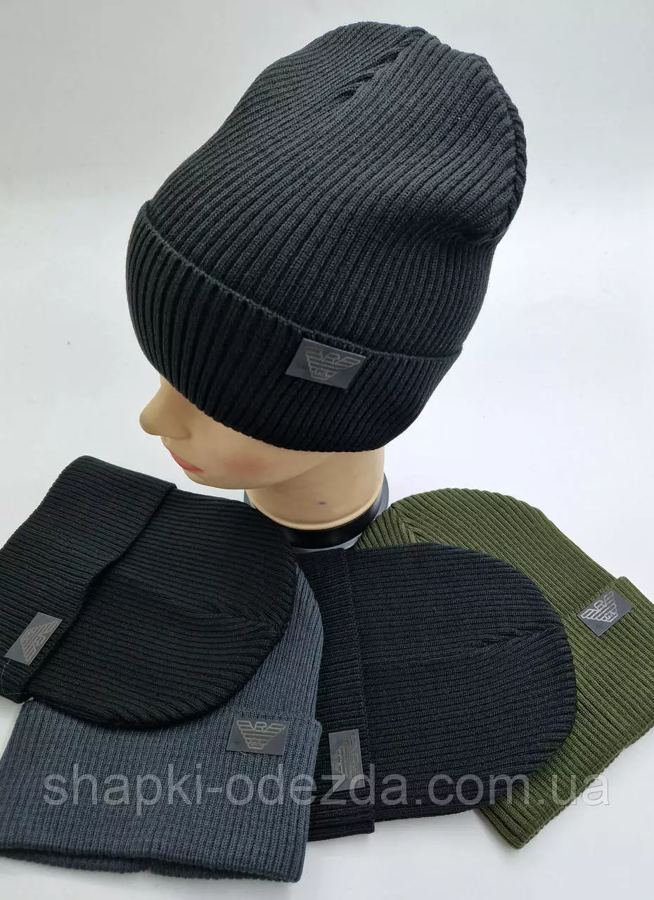 Шапка рубчик резинка для мальчика "Armani" Оптом одинарная