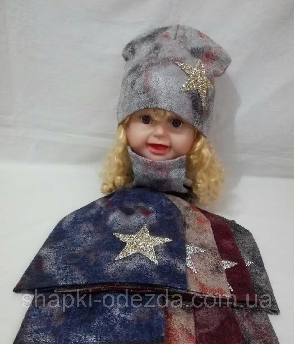 Шапка трикотажная двойная + хомут для девочки р 50-52