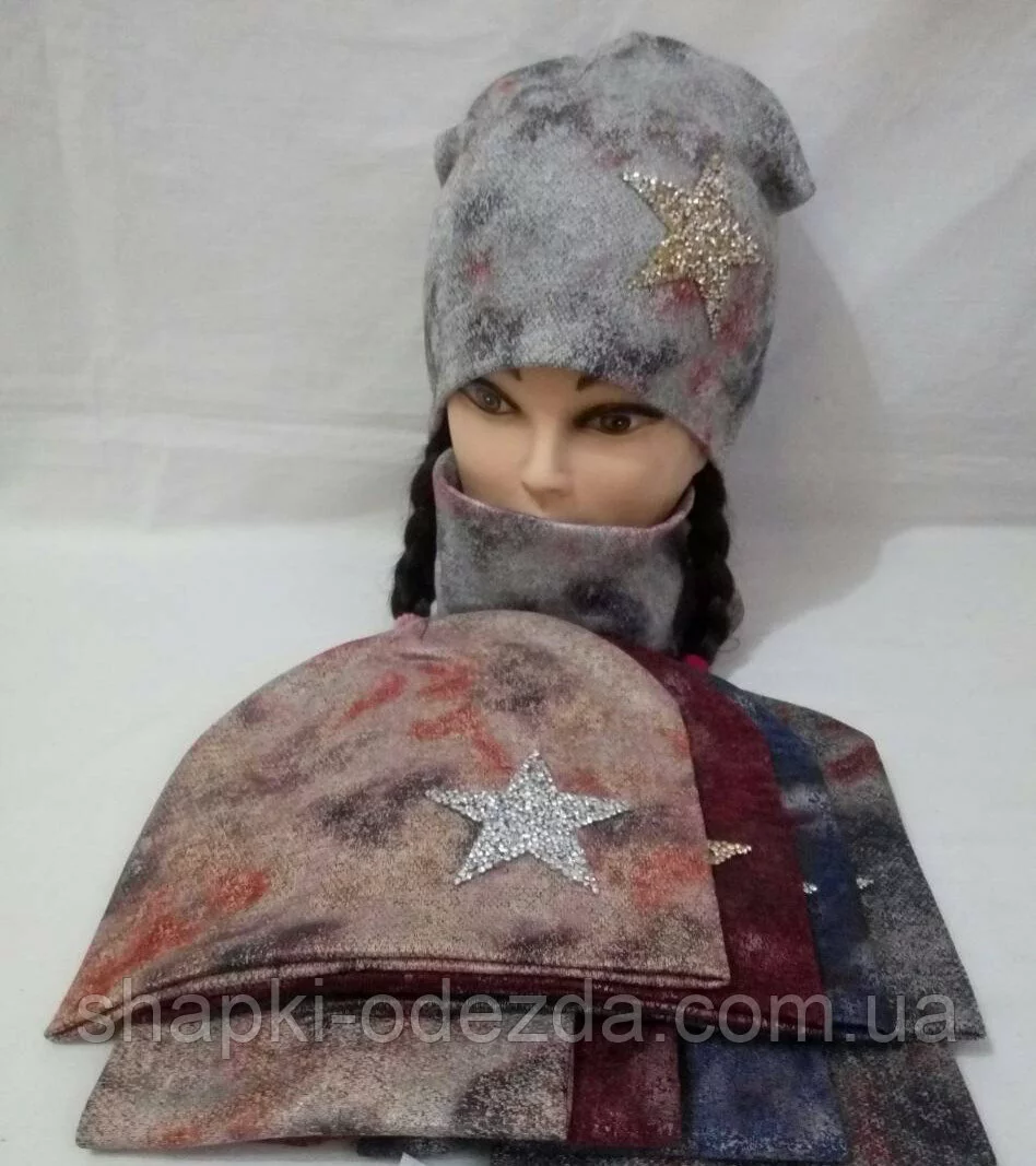 Шапка трикотажная двойная + хомут для девочки р 52-54