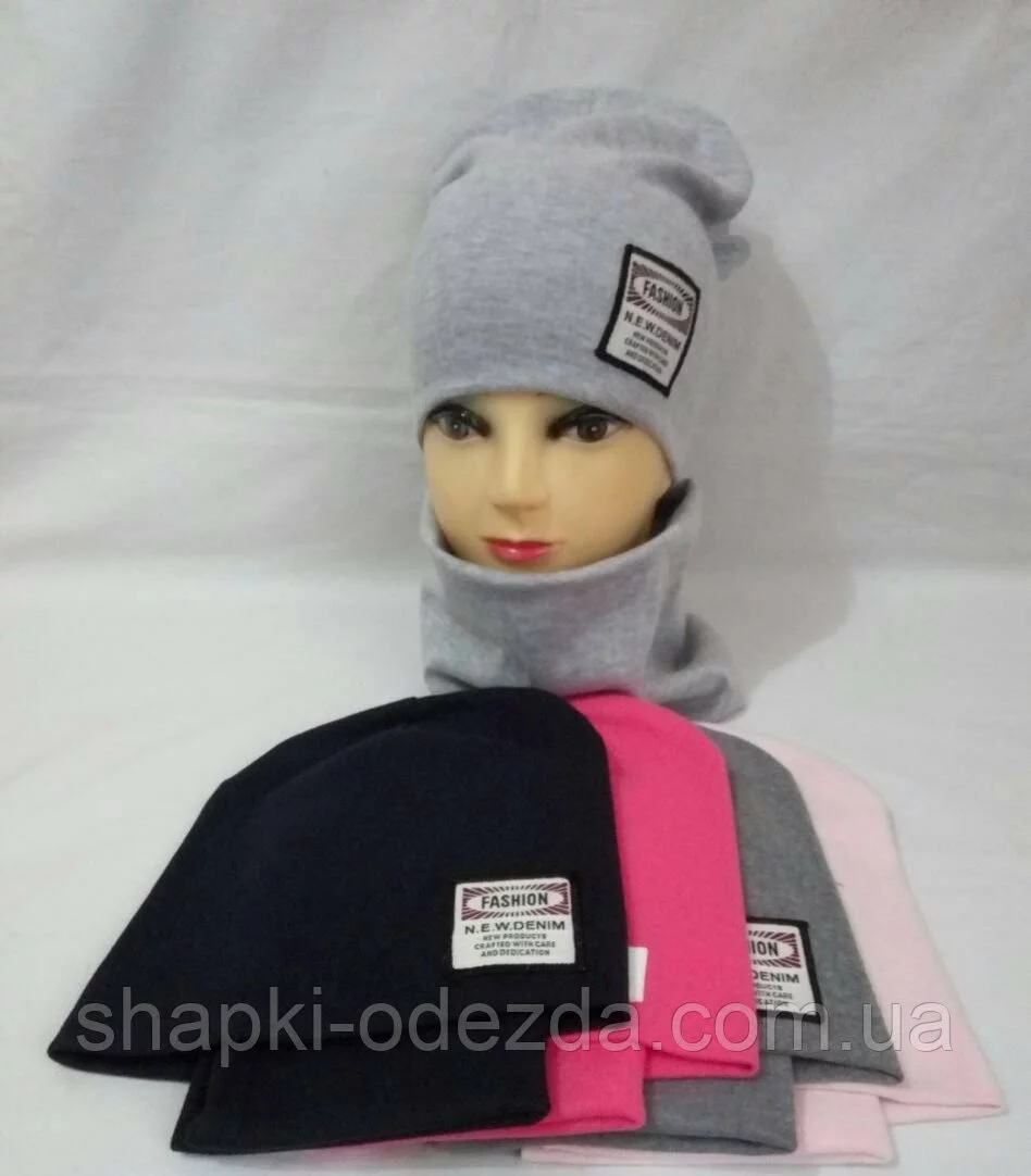 Шапка трикотажная двойная + хомут для девочки р 54-56