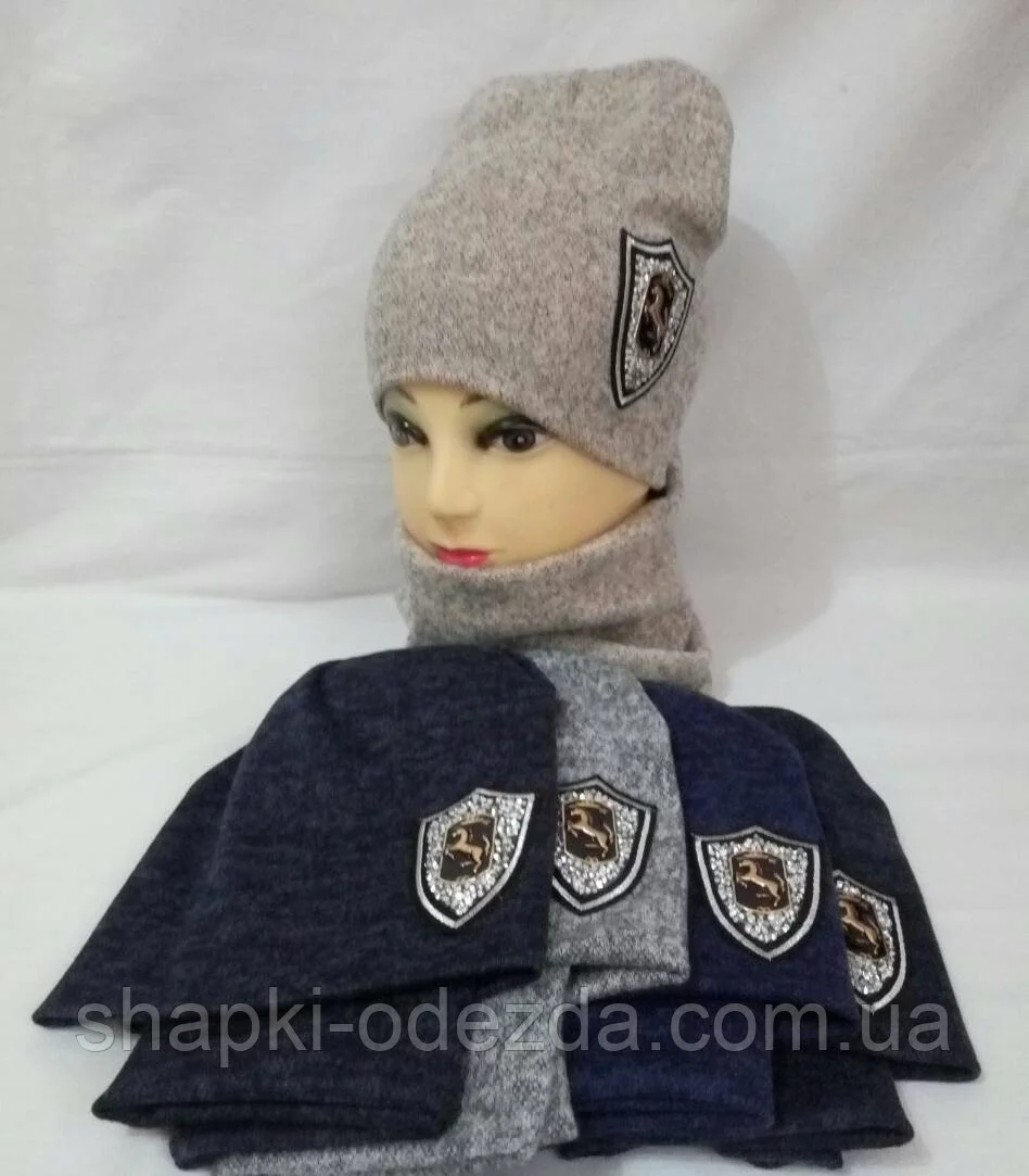 Шапка трикотажная двойная + хомут для мальчика р 50-52