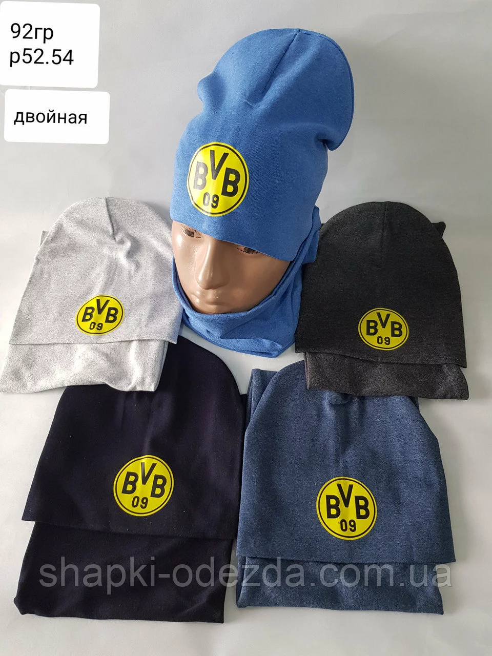 Шапка трикотажная двойная + хомут для мальчика р 52-54