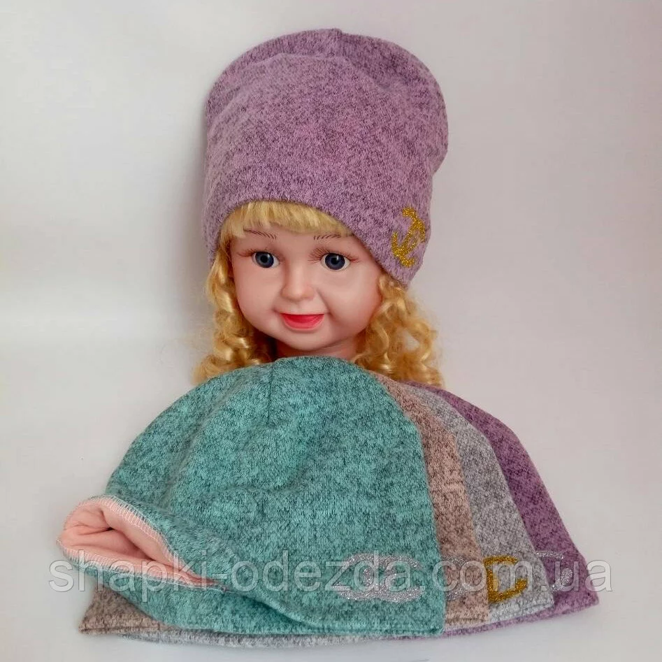 Шапка трикотажная х/б подкладка для девочки р 48-50