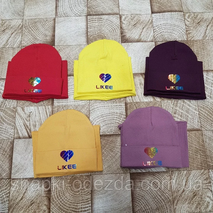 Шапка трикотажная + хомут для девочки двойной р 44-48