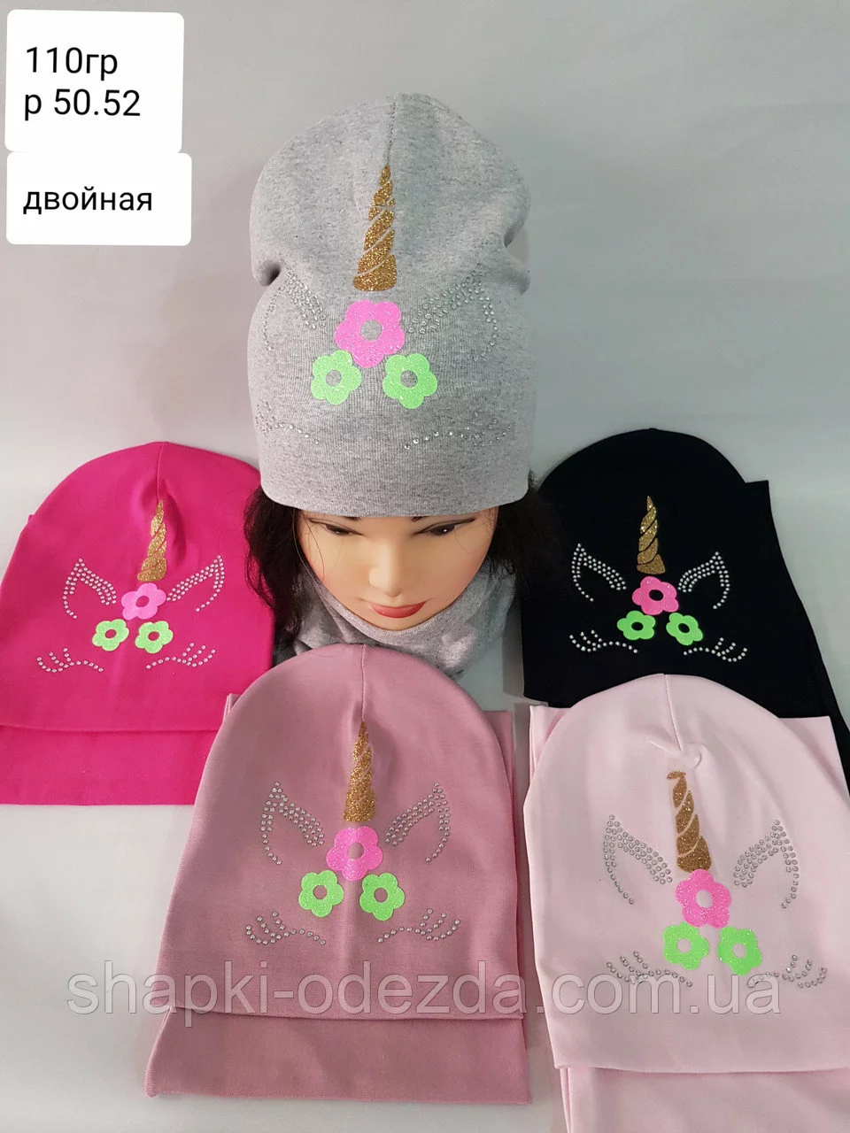 Шапка трикотажная + хомут для девочки двойные р 50-52