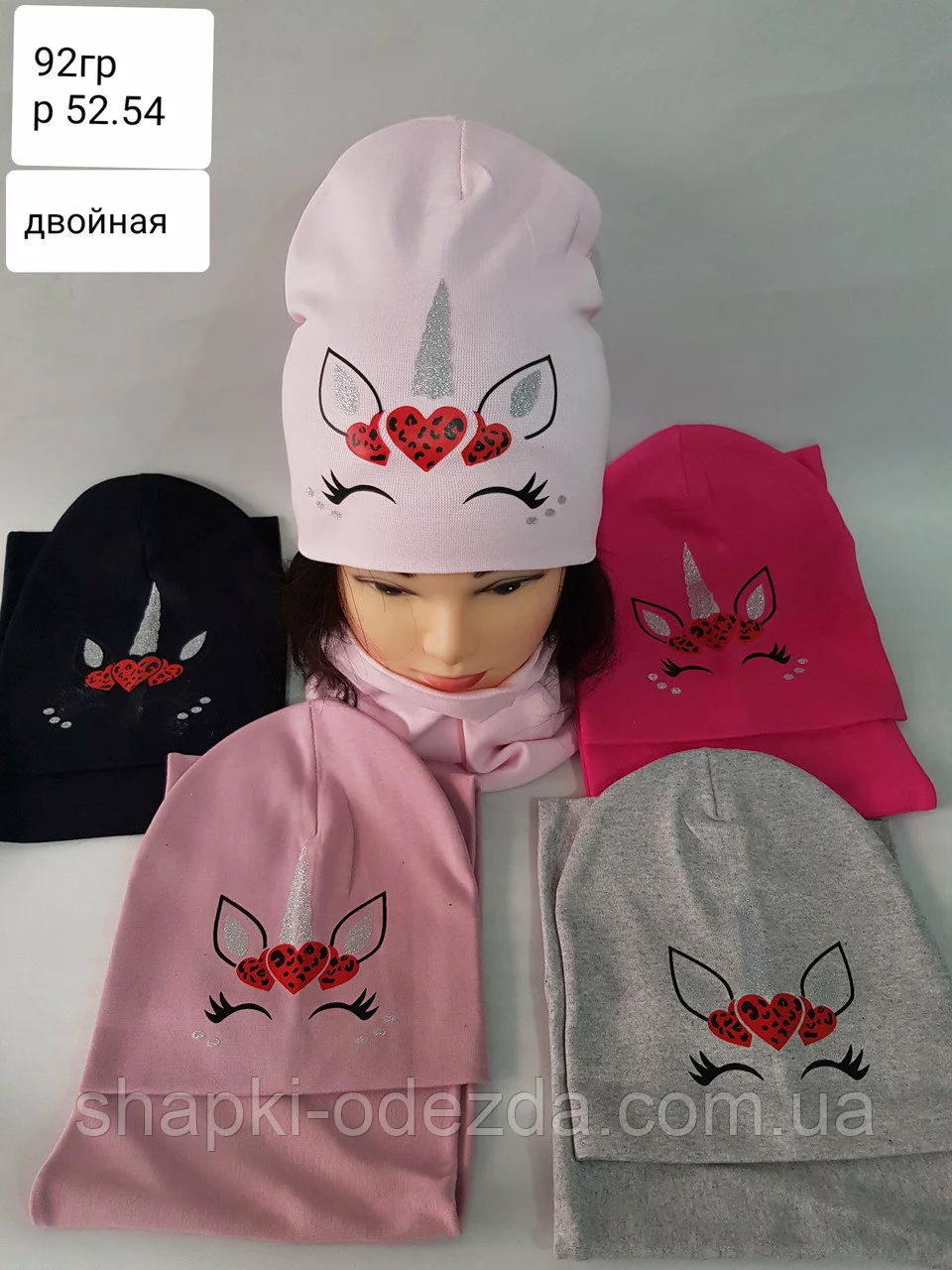 Шапка трикотажная + хомут для девочки двойные р 52-54
