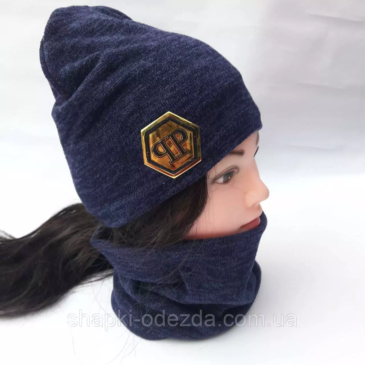 Шапка трикотажная + хомут для девочки и мальчика на хб подкладке р50-52