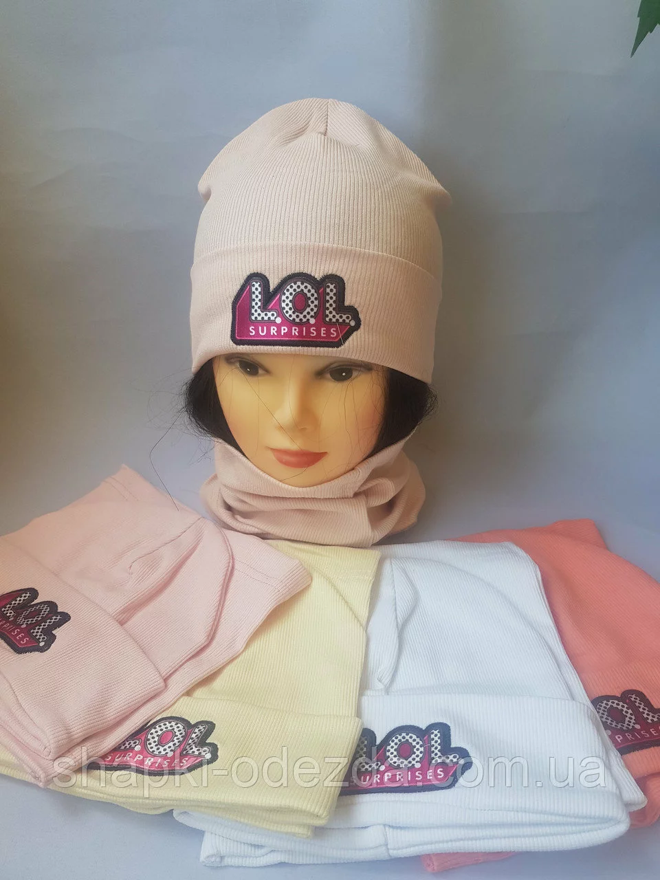 Шапка трикотажная + хомут для девочки однослойная р 50-52