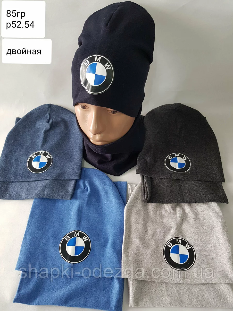 Шапка трикотажная + хомут для мальчика двойные р 52-54